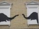 The elusive artist unveils an elephants stencil piece in Chelsea, south-west London.